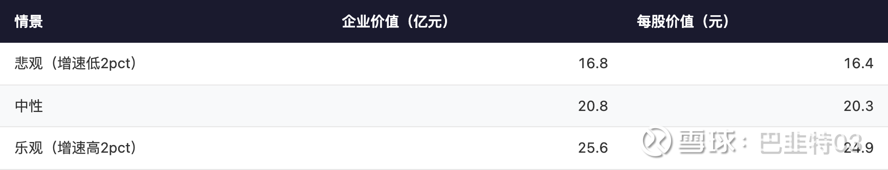 情景: 中性 | 企业价值(亿元): 20.8 | 每股价值(元): 20.3