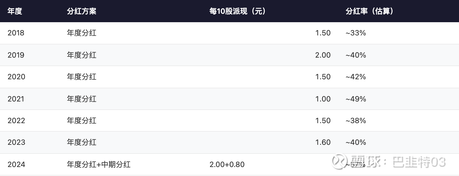 年度: 2023 | 分红方案: 年度分红 | 每10股派现(元): 1.60 | 分红率(估算): ~40%