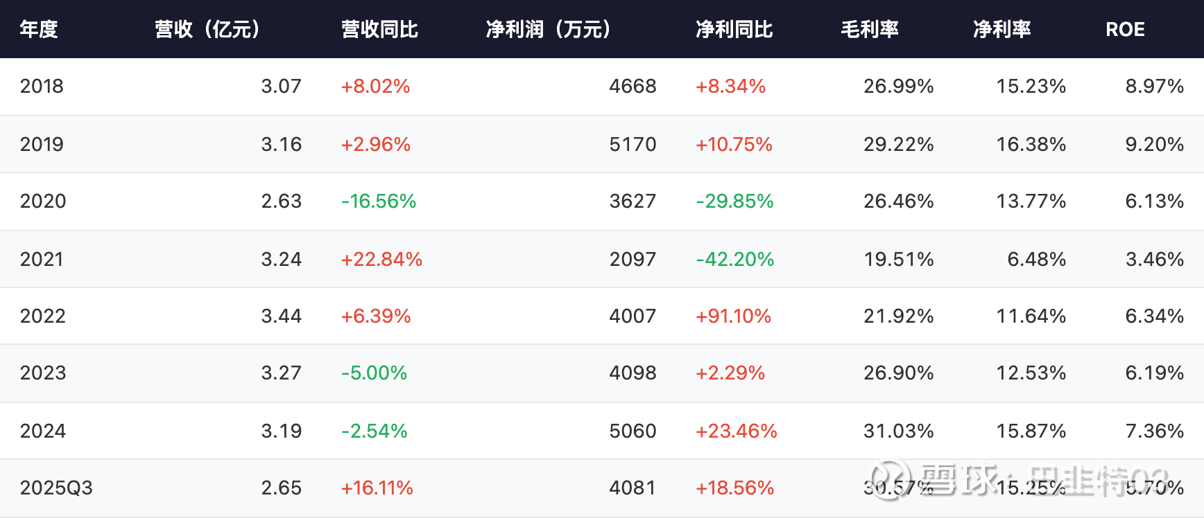 年度: 2025Q3 | 营收(亿元): 2.65 | 营收同比: +16.11% | 净利润(万元): 4081 | 净利同比: +18.56% | 毛利率: 30.57% | 净利率: 15.25% | ROE: 5.70%