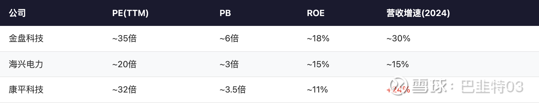 公司: 康平科技 | PE(TTM): ~32倍 | PB: ~3.5倍 | ROE: ~11% | 营收增速(2024): +24%