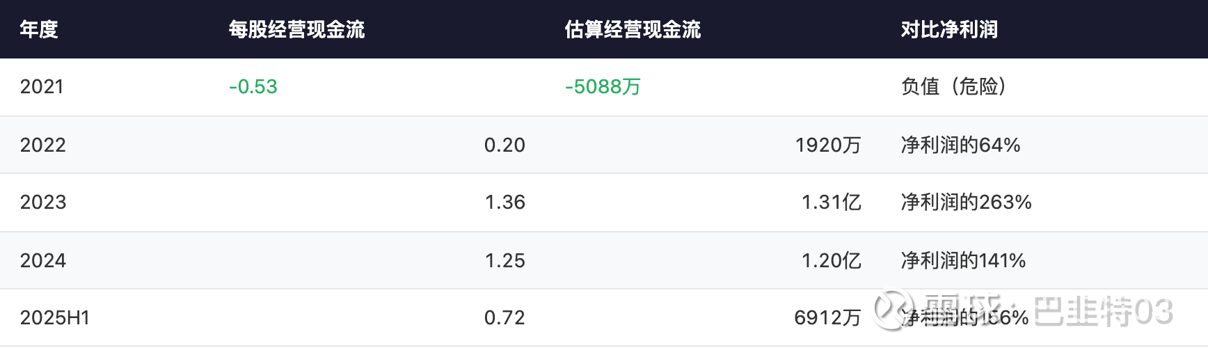 2023-2024年的现金流质量非常好——经营现金流远超净利润,说明赚的是真金白银。这是一个重要的正面信号。