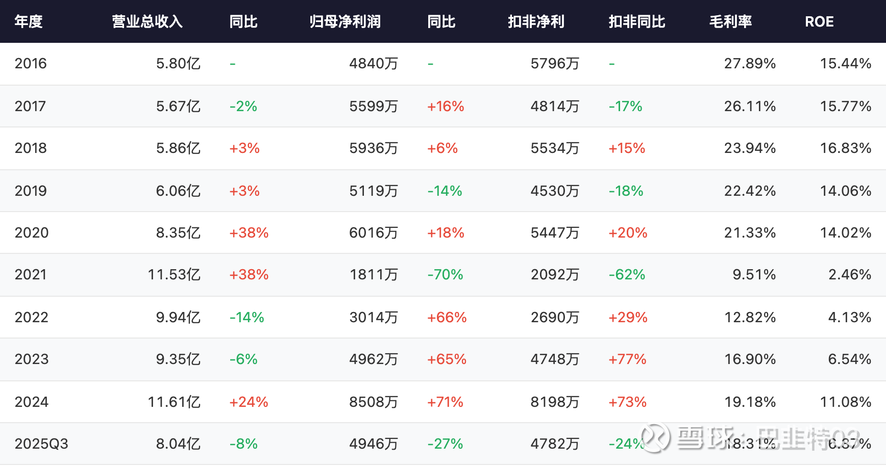 年度: 2024 | 营业总收入: 11.61亿 | 同比: +24% | 归母净利润: 8508万 | 同比: +71% | 扣非净利: 8198万 | 扣非同比: +73% | 毛利率: 19.18% | ROE: 11.08%