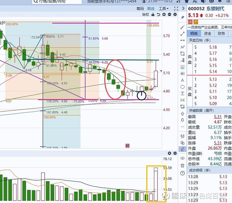 $东望时代(SH600052)$本文技术分析仅从主控理论角度研判,不参考基本面数据。仅作个人日记分享,不做指导意见。投资有风险,入市需谨慎。下跌到1.382位置,出带量大阳线,多头洗盘信号,逢低可试试进
