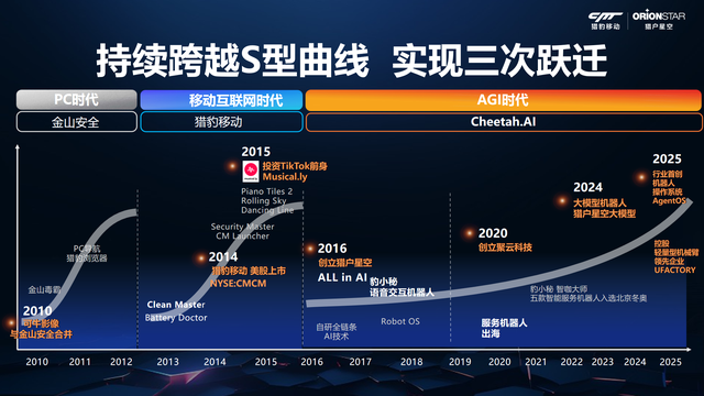 比如在PC时代,猎豹以浏览器、金山毒霸和网址导航构建了“三级火箭体系”,实现公司盈利;再到移动互联网时代,又转型出海互联网公司,推出猎豹清理大师、猎豹安全大师以及手机系统管家等,从工具型产品跨入内容赛道;随着AI技术的发展,2016年公司开始逐步转型为AI公司,并于2023年对猎户星空实现并表。