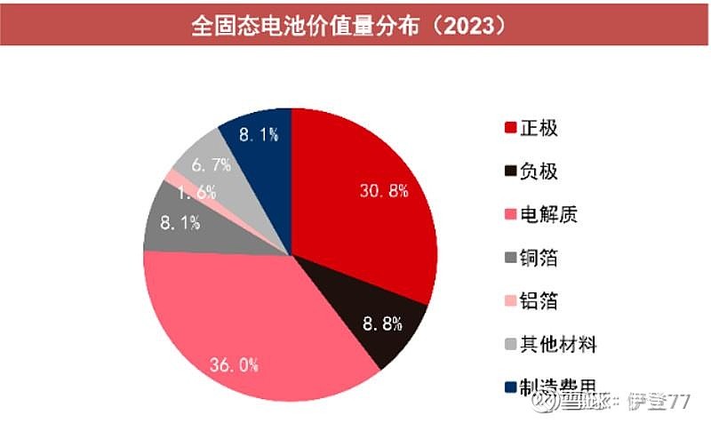 1、全固态电池,由正极、电解质、负极、辅材(铜箔、铝箔等等)组成,其中,正极和电解质加起来占整个固态电池成本的50%-60%。