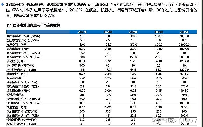 3、预计2030年,固态电池渗透率30%,全球固态出货100GWh;