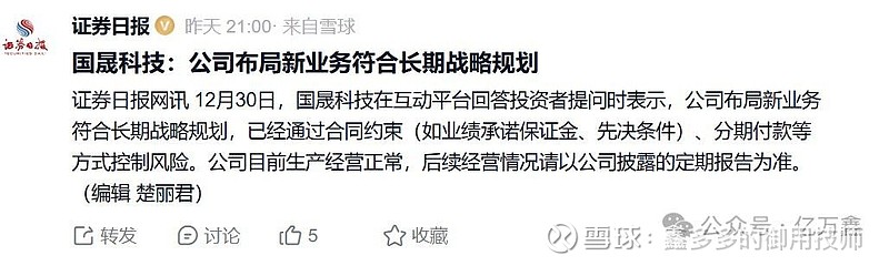 公司很明确的表示了,布局新业务符合长期战略规划,通过合同约束,分期付款等方式。