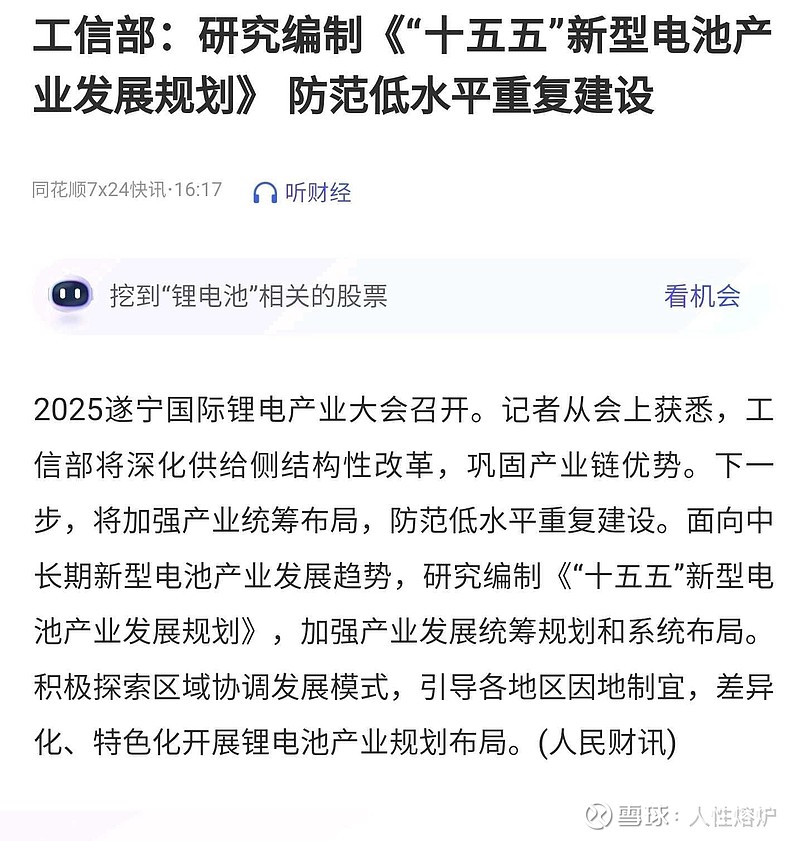 $泰和科技(SZ300801)$$先导智能(SZ300450)$ $赣锋锂业(SZ002460)$ “十五五”规划第一个爆出消息的产业,新型电池产业,要不要来一波?电池是新能源车的核心,我们作为全球主导新能源车的国家,必然不能在新型电池方面落后于人,不然就又要卡脖子了!