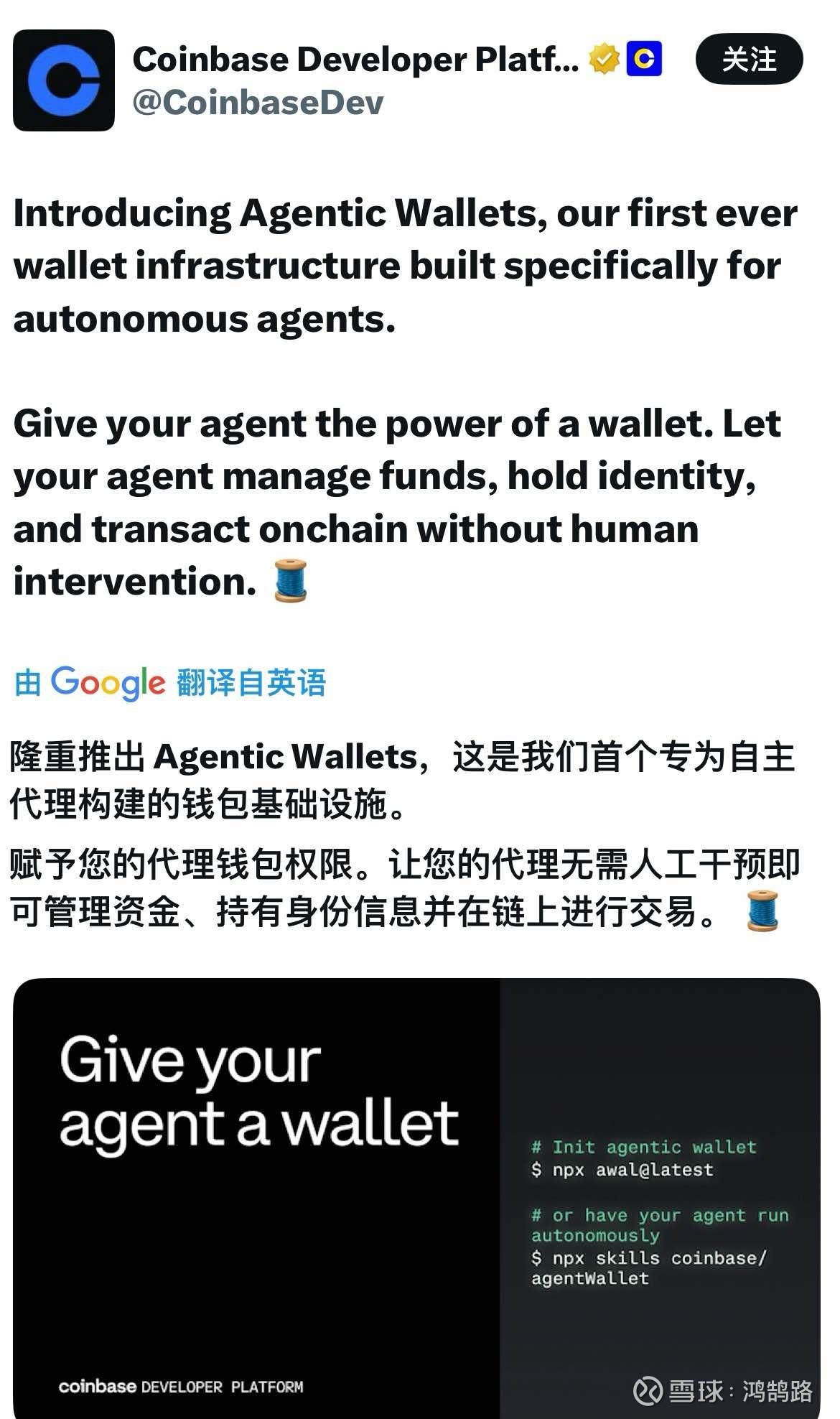 From @qinbafrank :Agent代理开始拥有了专门的钱包,“AgentEconomy”代理经济正在被催生。Coinbase又有一个新的大动作,今天正式推出了Agentic Wallets:这是首个专为AI代理(AI agents)设计的钱包基础设施。它让AI代理能够真正实现自主持有资金、支出、赚取收益和交易,而无需人类每次手动批准。