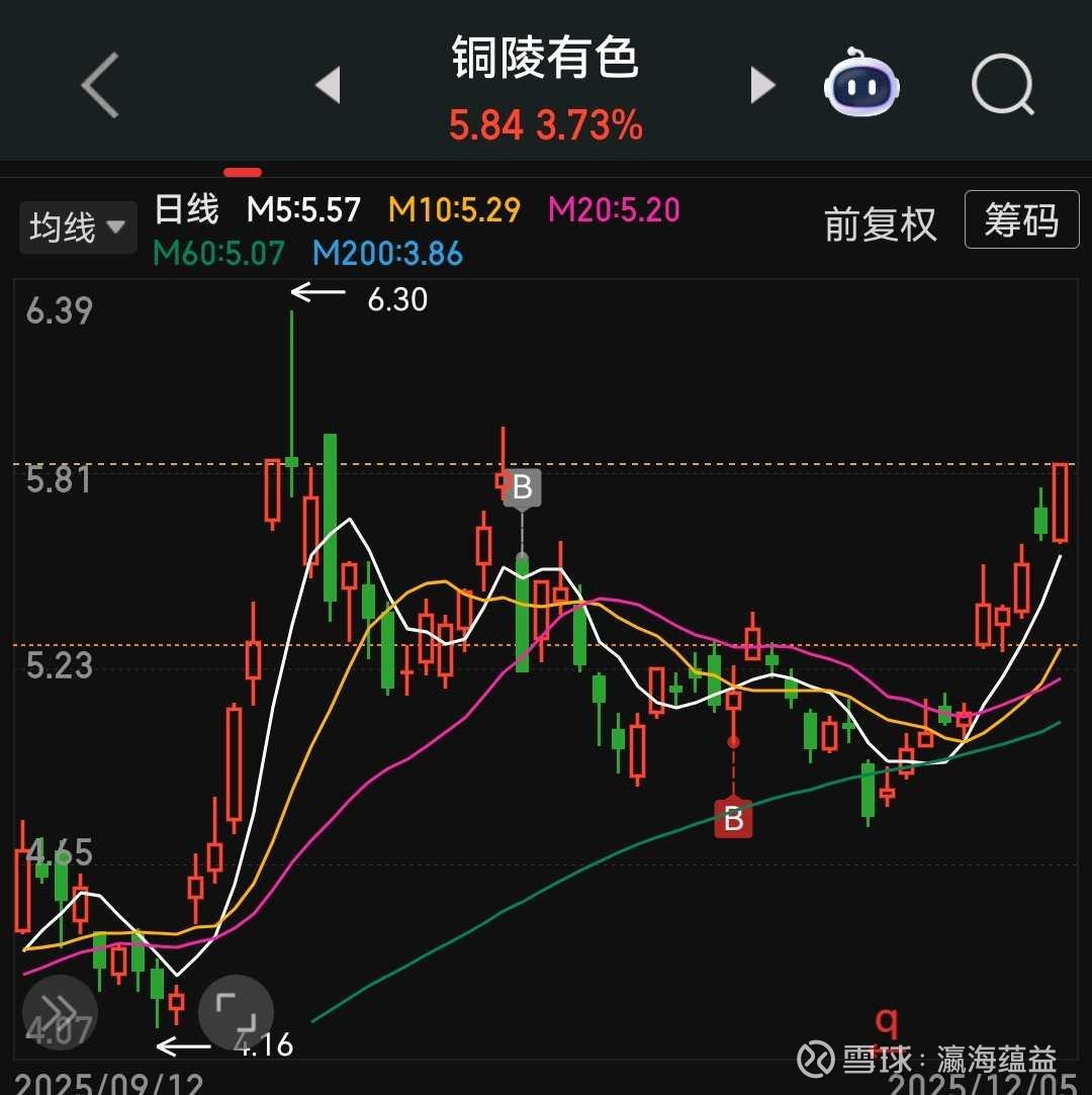 目前总市值约750亿,2025年三季报倒推四个季度净利润18.8亿,市盈率TTM大约40了。铜陵的主业分两部分:矿的市盈率本就参照紫金洛钼;精铜加工苦逼工作,市盈率给的低些。所以40是真TM高。