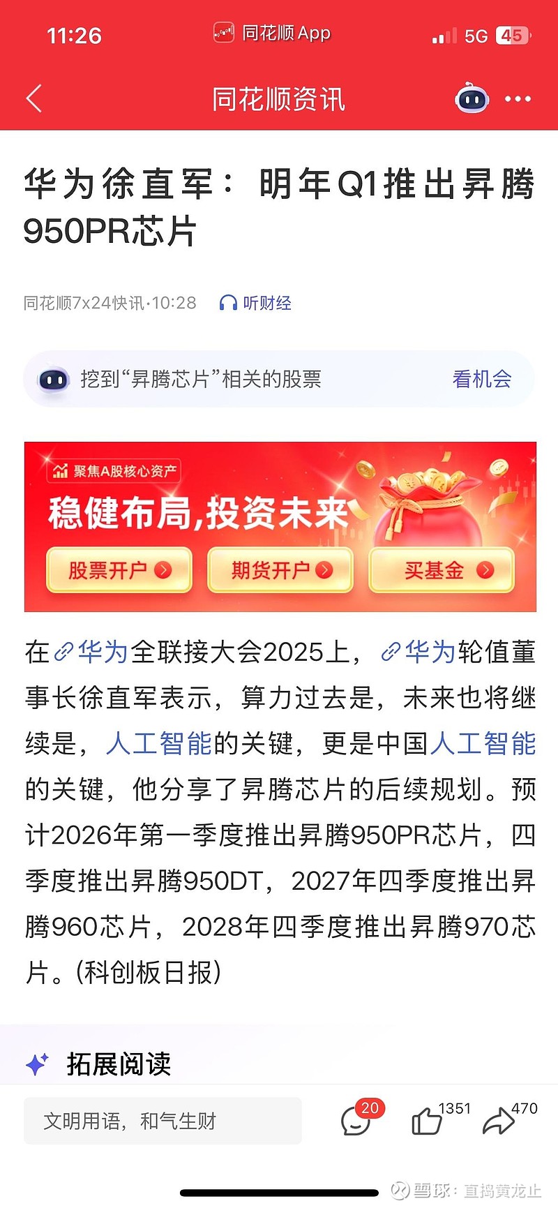 徐直军强调,昇腾950系列将搭载自研HBM技术,推理性能较前代提升40%,内存带宽扩展2.5倍,配合灵衢2.0互联协议可构建百万卡级超节点集群。作为华为昇腾AI服务器核心代工商,黄河信产主导开发的Atlas 900集群单套算力达20.48P FP16,已深度参与中原、青岛等国家级人工智能计算中心建设。随着昇腾950PR在2026年Q1量产,黄河信产有望率先获得超节点服务器订单,其"昇腾芯片+全闪存数据中心"解决方案将服务于智能制造、智慧城市等场景。