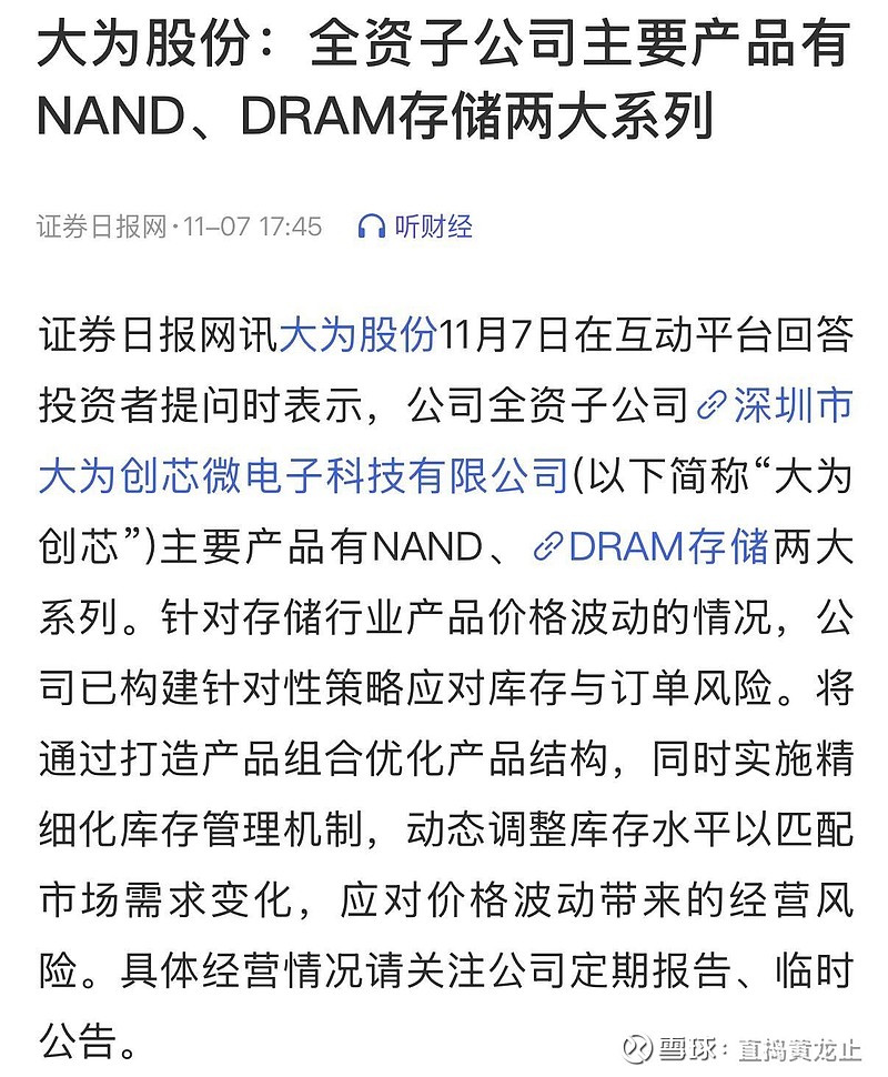 存储行业近期迎来涨价潮。三星、SK海力士等头部企业计划在2025年第四季度将DRAM和NAND闪存价格上调最多30%。这一趋势将为公司存储业务带来额外增长动力。