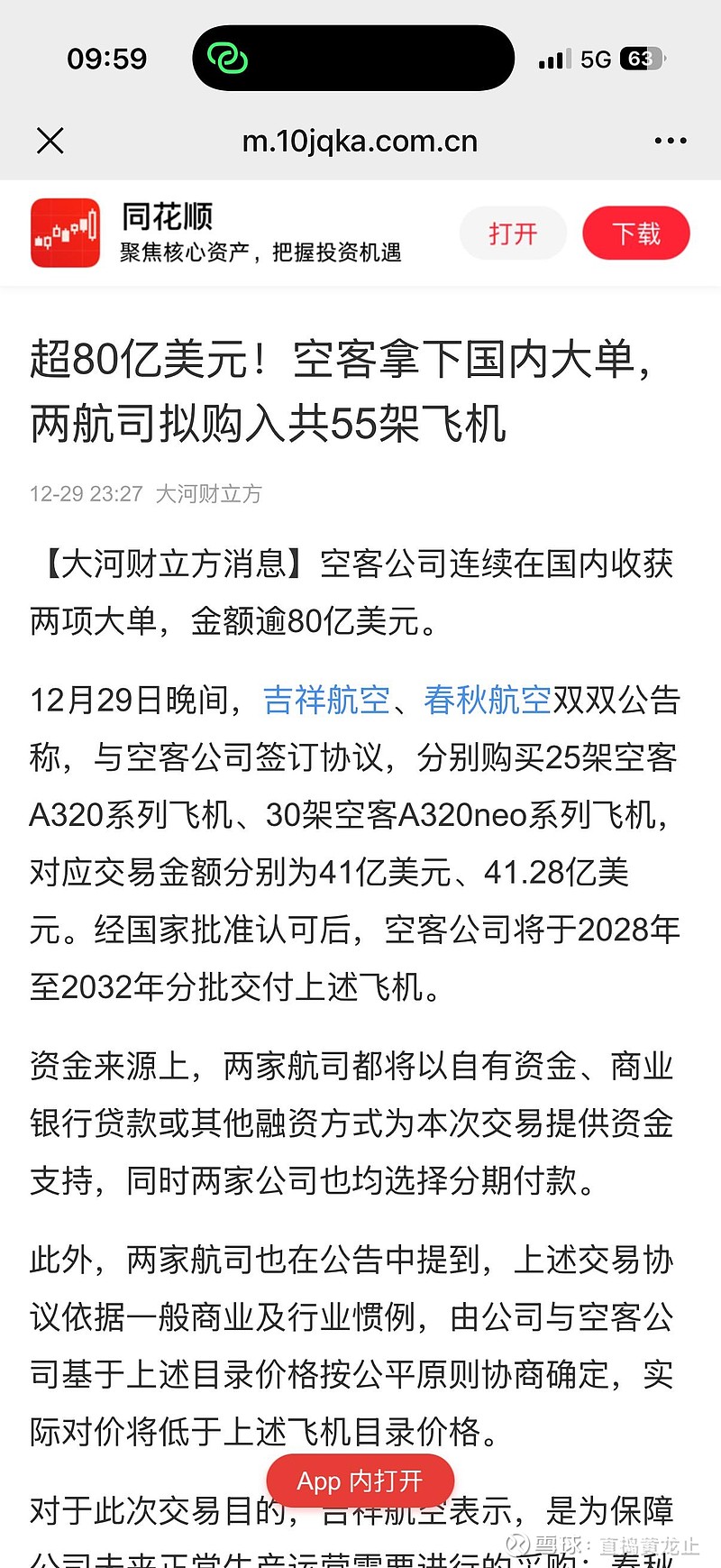 发布公告,分别向空客公司采购25架和30架A320系列飞机,交易金额总计超过82亿美元。这些飞机将于2028年至2032年间分批交付。