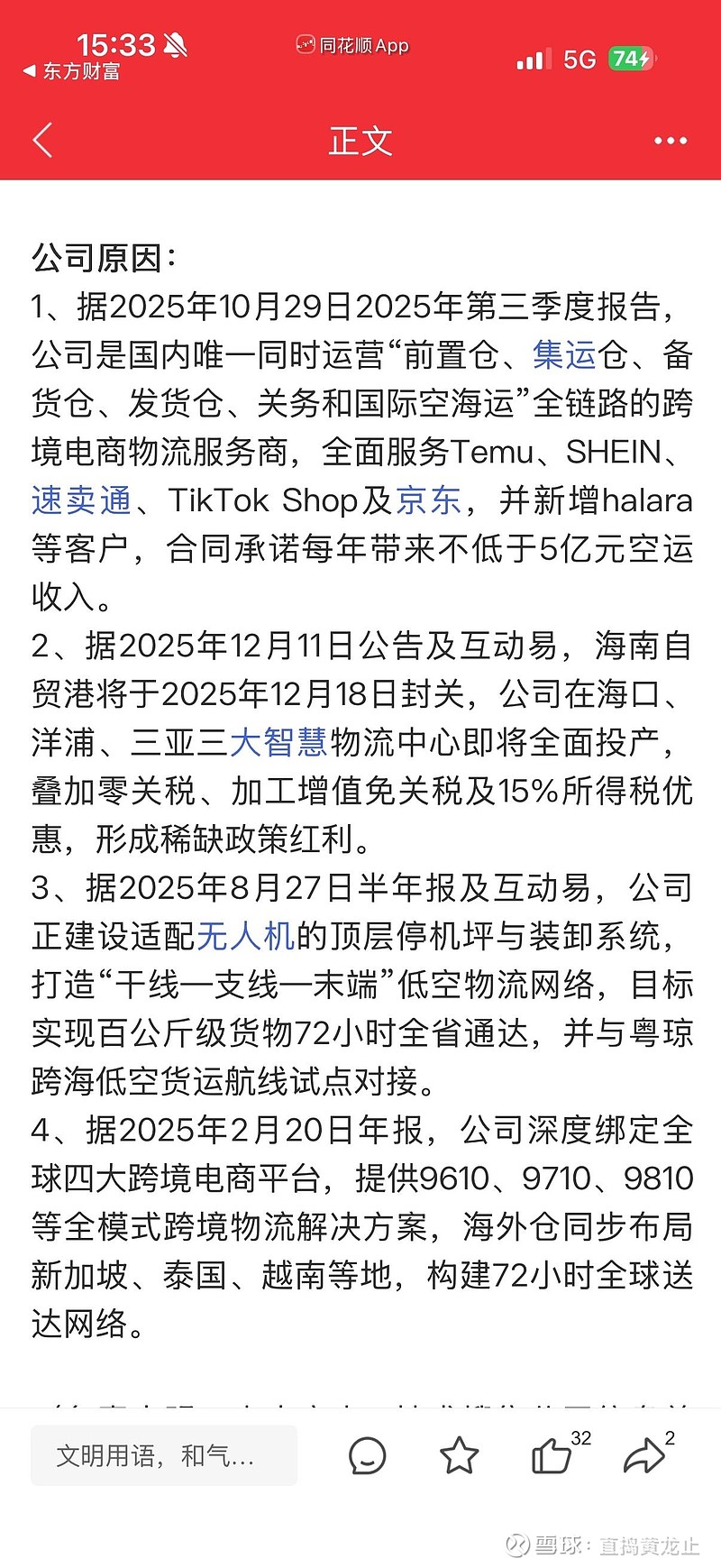 • 创新业务模式:公司还探索如跨境电商出口退货“一站式”监管、低空物流技术应用等创新模式,进一步提升物流效率,降低成本。