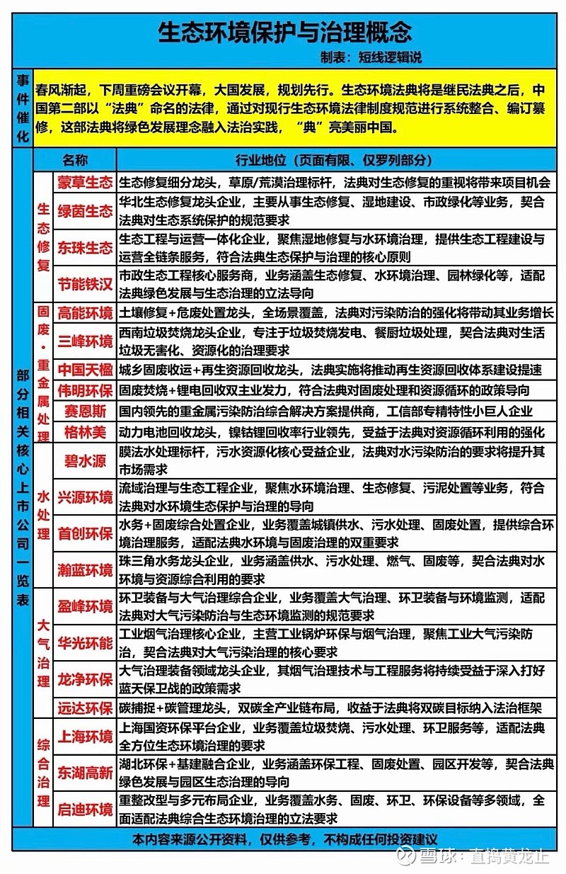 除了中原环保和圣元环保,生态环境法典的实施还将惠及环保产业链多家上市公司: