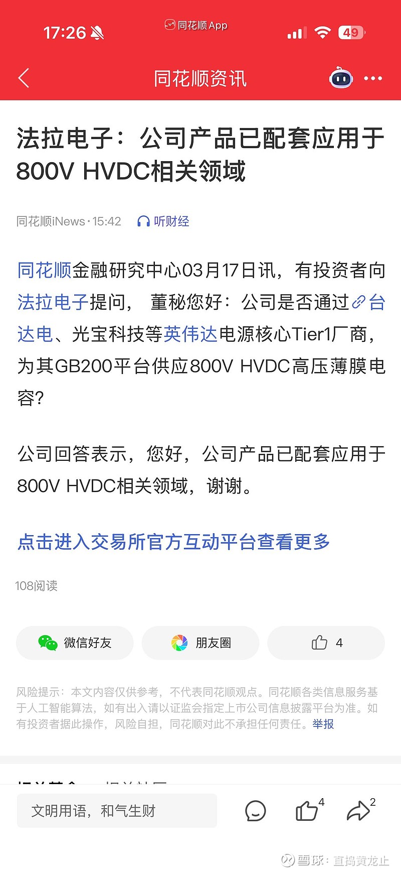 3月17日,法拉电子在回复投资者提问时明确表示:“公司产品已配套应用于800V HVDC相关领域”。这一简短回复背后意义重大——它意味着公司已通过台达电、光宝科技等英伟达电源核心Tier1厂商,为英伟达最新的GB200 AI服务器平台供应800V高压直流(HVDC)薄膜电容。