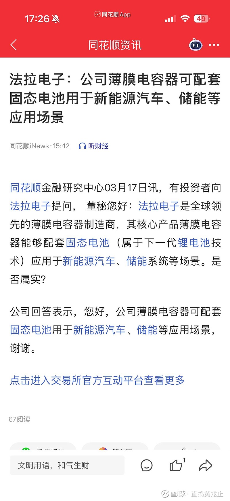 法拉电子的主业已经非常赚钱了,我现在挖掘的是他第二增长曲线,也是当下的市场热门风口,但是市场还没有给他相应的市值溢价。。前期我挖掘了