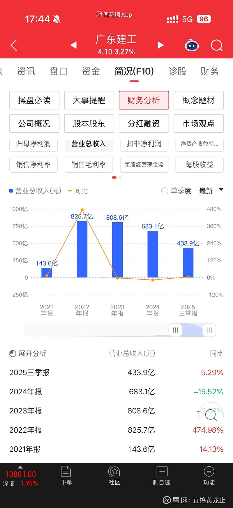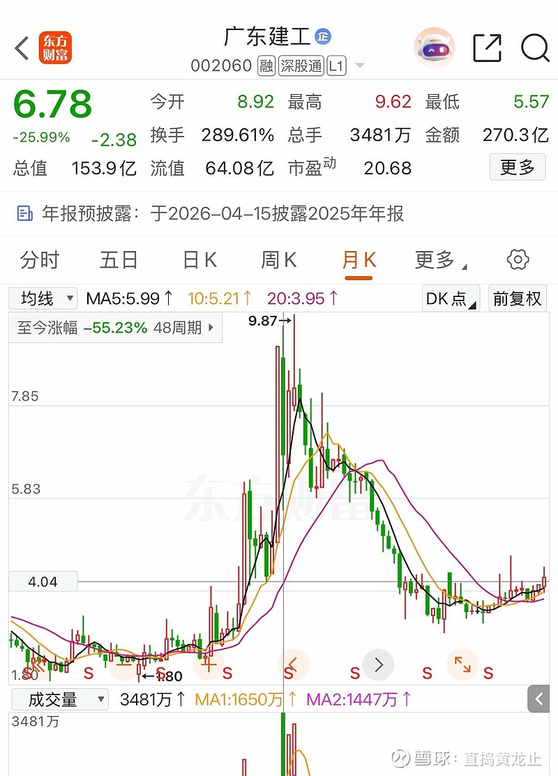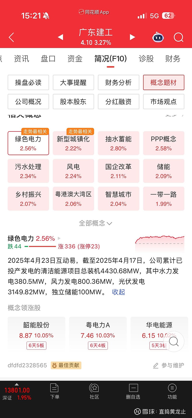 下面根据现在的市场绝对主线电力股,挖掘一个位置最低比里面机构位置都要低的电力股之前也是电力大牛股,粤水电(现在的广东建工),因为他前几年蛇吞象重组了广东建工然后更改名称,重组后从高位下跌了55%,这个位置买不了吃亏买不了上当,下面详解他的基本面和配置。