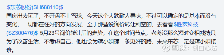不用再讨论什么国资,大基金会不会入股,会不会定增了,因为他们本是东芯原始股东,仅仅是定增再放进来多少钱的问题。实际上,东芯早就是国资背景的民营企业。被招安之后的蒋老板,已经不属于他自己。天上的风筝,提线的木偶,NPC而已。蒋学明不是吃人的老虎,我们不是与虎谋皮。他是比狼人多一点的狼人,我们是与狼共舞。错过了英伟达,买不到华为,还要失去东芯股份吗?东芯是小华为,蒋学明是小任正非,蒋雨舟是小孟晚舟。愿不愿意同舟共济? 中芯国际入股砺算科技,还有人质疑拿不到中芯产能吗?华为入驻东芯,还担心GPU的性能吗?华润何小龙都着急上车,还有人卖掉东芯的股票吗?大金主是国家集成电路产业投资基金股份有限公司,还有人担心砺算科技后面缺钱吗?