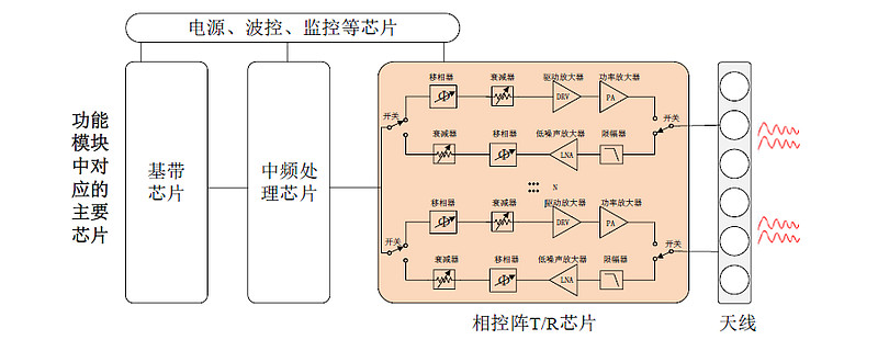 模拟相控阵:采用模拟器件的移相器,通过改变天线各阵元信号相位从而合成空间波束的雷达体制。