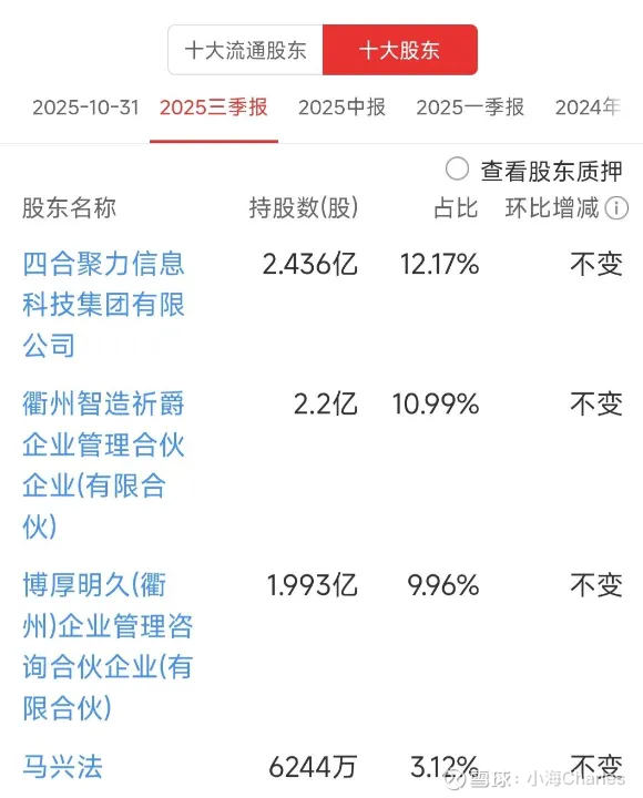 5.汇洲智能【ST汇洲】股东结构【25年三季报】: