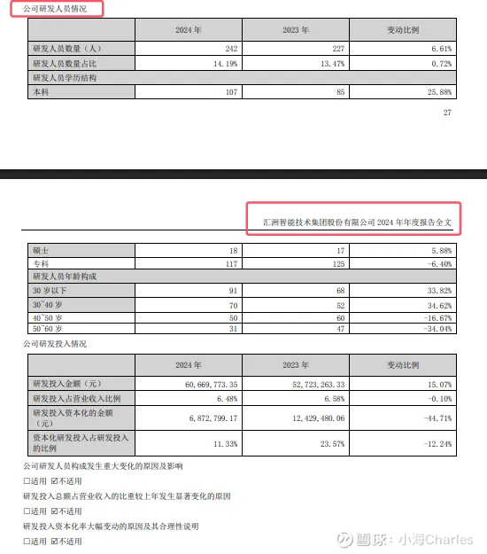8.汇洲智能研发投入及公司研发人员情况【汇洲智能2024年年报】: