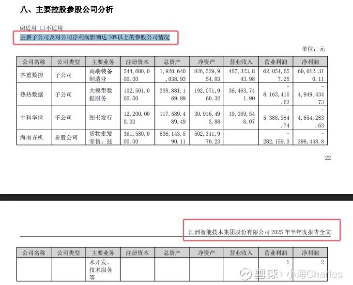 11.汇洲智能主要子公司及对公司净利润影响达 10%以上的参股公司情况【汇洲智能2025年半年报】:
