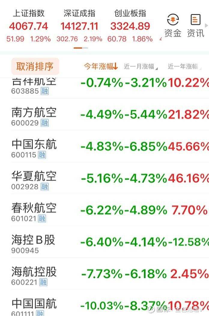 $海航控股(SH600221)$ 今天是所有航空股中唯一下跌的一只,年初至今基本一路阴跌,下跌7.73%,跑输上证指数将近10%,股价依旧位列全A股非ST股倒数前十名单中。