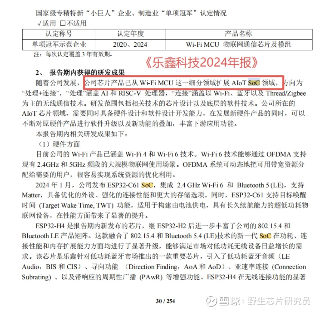 1.《乐鑫科技2024年报》中有云:“公司芯片产品已从 Wi-Fi MCU 这一细分领域扩展 AIoT SoC 领域”,说明其认为MCU属于SoC的一种;