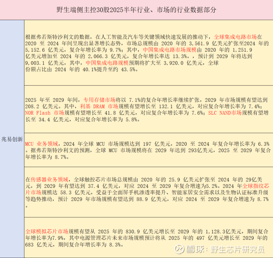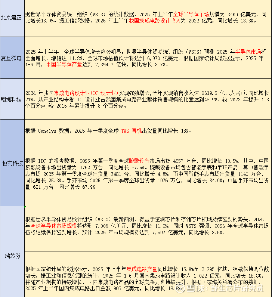 从上述公司的行业引用来看,2025年上半年芯片行业整体呈现"全球回暖、中国提速、细分赛道多点开花"的态势。AI、汽车电子、存储、物联网、智能家居等成为共识性高增长领域,而WSTS、IDC、Canalys、灼识咨询等成为多家公司引用的权威数据来源。