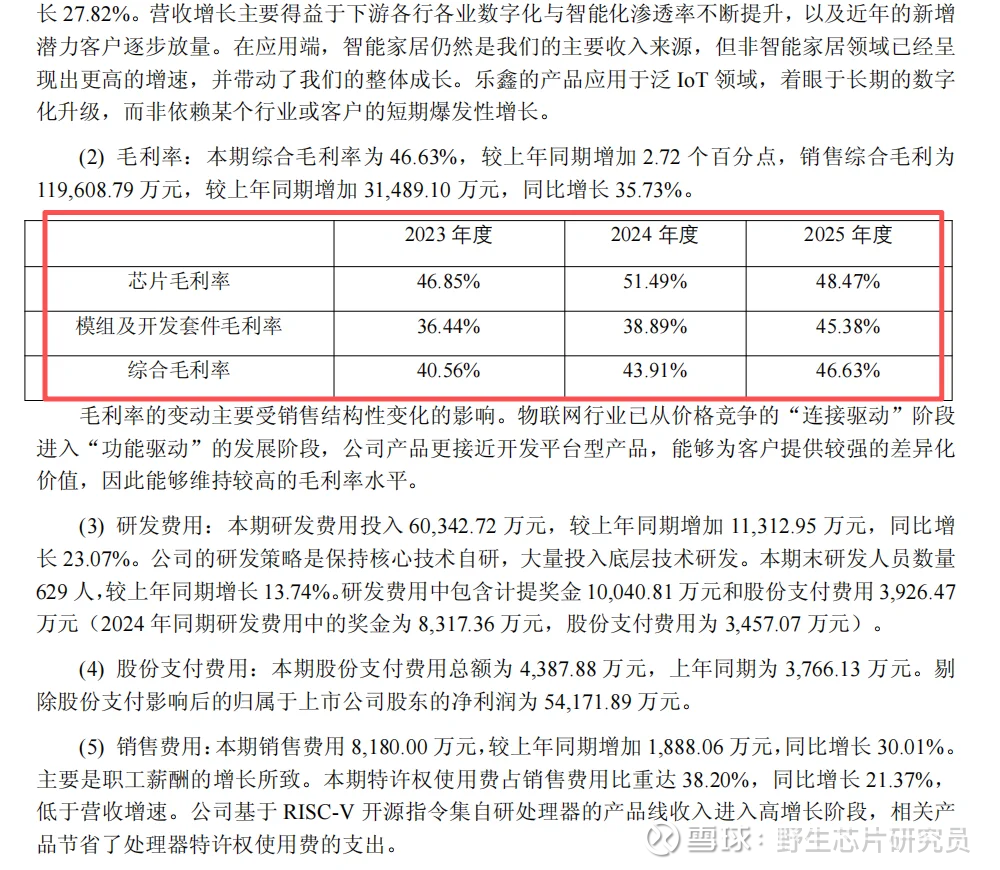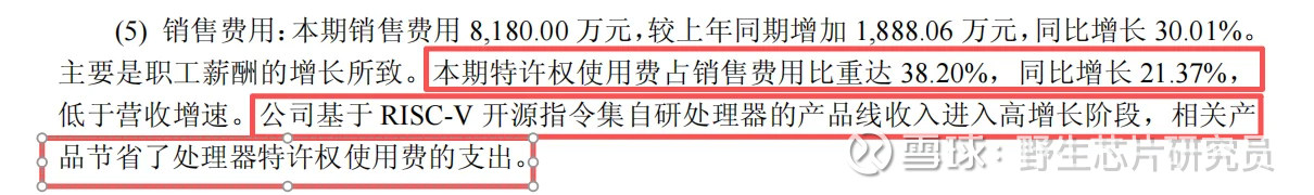 所以乐鑫在销售费用里提到: “公司基于 RISC-V 开源指令集自研处理器的产品线收入进入高增长阶段,相关产品节省了处理器特许权使用费的支出。”