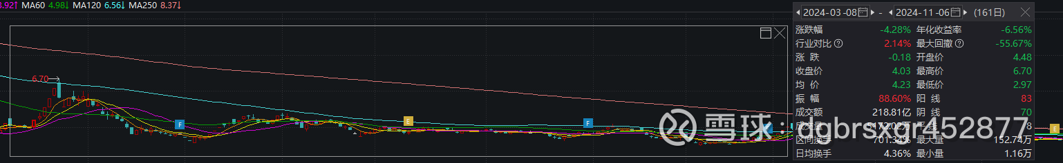 三、傲农生物是24年3月8日被法院同意预重整,于11月6日拿到路条,期间涨跌幅为-4.28%,股票整体呈现震荡走势