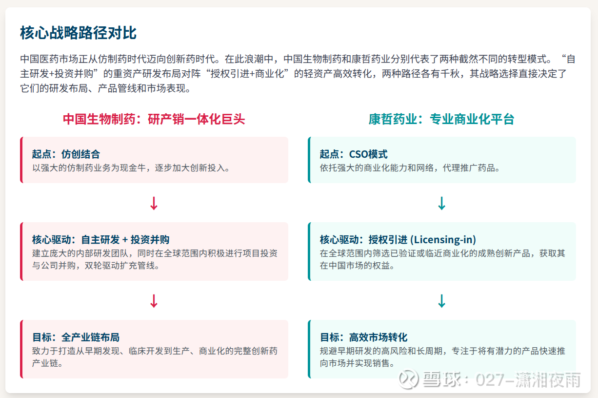 本报告的核心论点是:中国生物制药与康哲药业分别代表了中国大型药企创新转型的两种截然不同的范式。