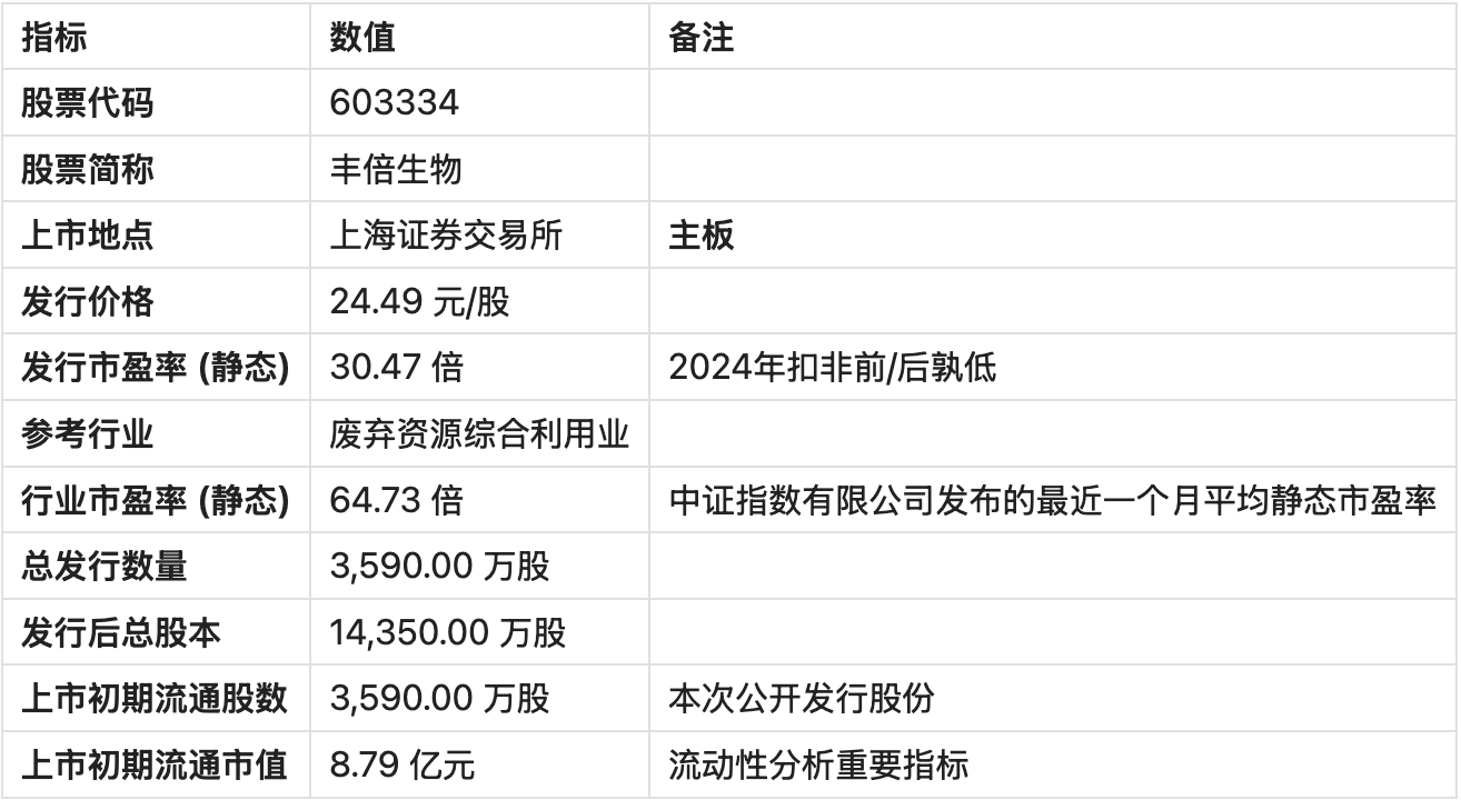 丰倍生物在上海证券交易所主板上市,股票代码为603334。主板的估值体系相对成熟,更注重公司盈利的稳定性和规模。