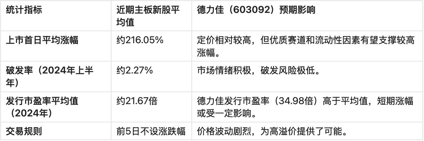 德力佳的流通市值(16.14亿元)属于主板中等偏小,其稀缺性和弹性较高。虽然发行市盈率(34.98倍)高于近期主板平均发行市盈率(21.67倍),但由于其低于行业平均,上市后的价格上涨仍是估值修复与流动性溢价的叠加。