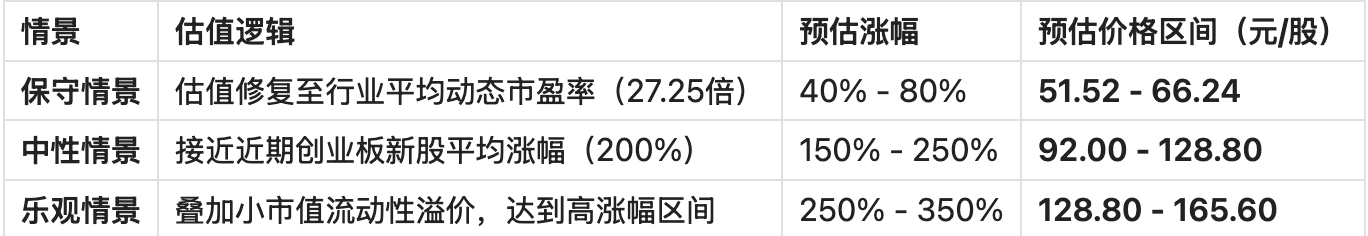 我们结合估值修复(理性基准)、市场情绪(近期平均涨幅)和流动性溢价(小市值优势)三个维度,给出以下价格区间预估: