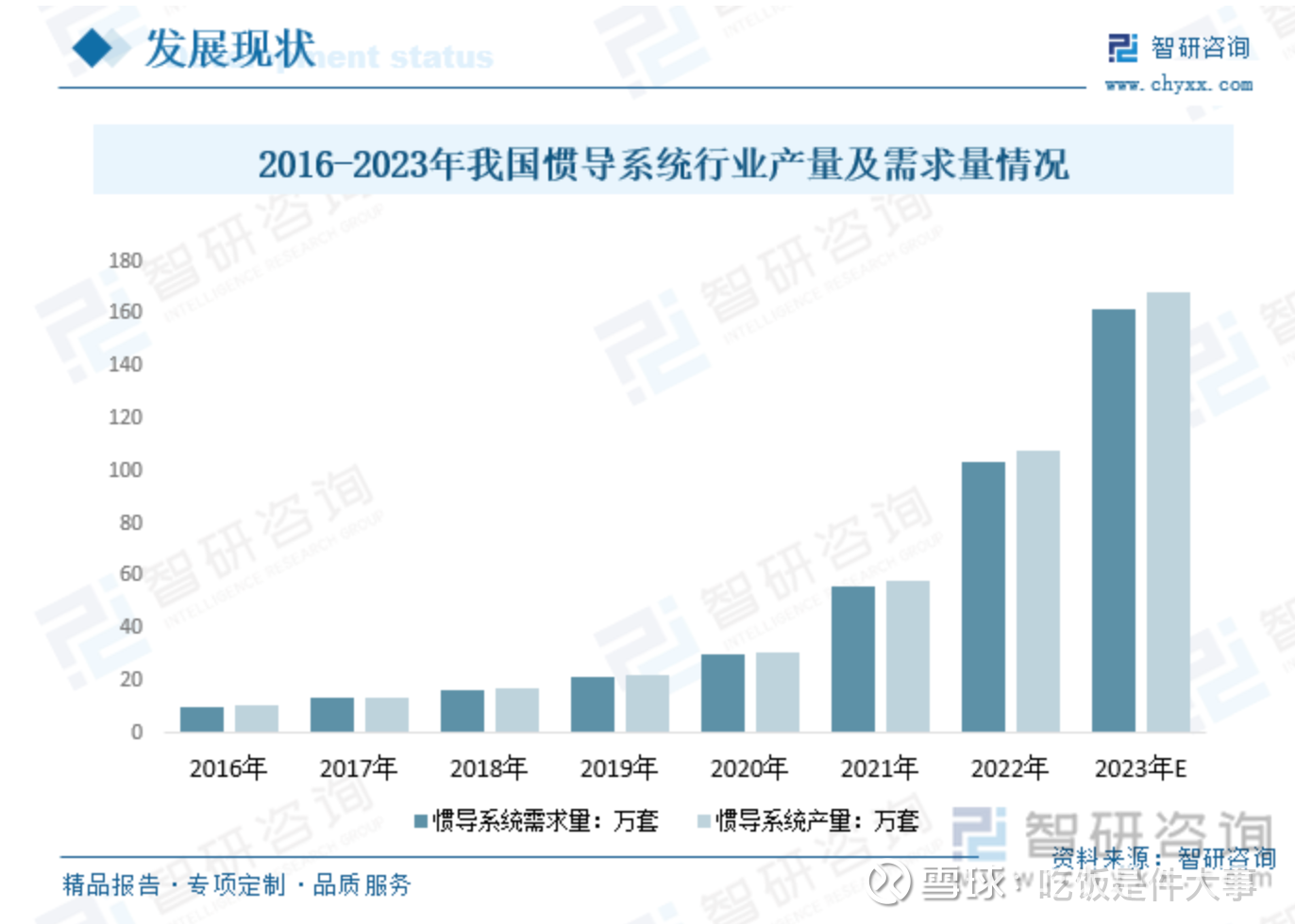 目前国内惯性导航/组合导航企业主要集中在中游惯性导航系统设计、制造、以及软件算法上。得益于国内智能汽车和自动驾驶产业的快速发展,主机厂对惯性导航产品的需求持续提升。2022年我国惯导系统需求量为103.73万套,产量为107.62万套;预计2023年我国惯导系统需求量为161.9万套,产量为168.36万套。