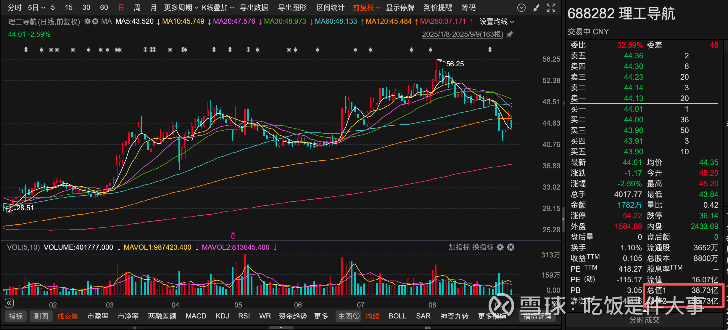 那理工导航多少市值?40亿。