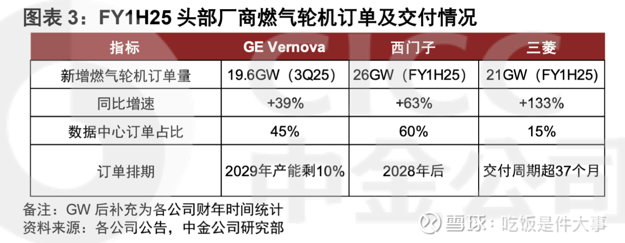 一是燃气轮机大厂的订单数据。GE/西门子/三菱三家在北美地区的市占率之合约为85%,这三家的燃气轮机反正是已经做不过来了。