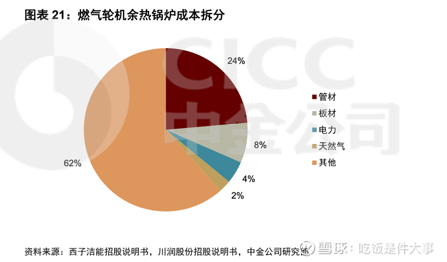 三是价值量,在联合循环燃气机组中,燃气轮机整机占50%的价值量,余热锅炉占25%左右。