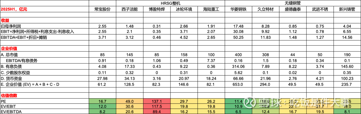 其实最吸引我的是常宝的低估值。论题材,余热锅炉管显然不如发电机组部署(杰瑞股份)、叶片等燃气轮机核心零部件(应流股份)、余热锅炉整机(博盈特焊)性感,但奈何这些股票的估值已经太高了!当然他们后面可能更高,但未经了解不敢轻易下手。相比之下,常宝的估值就有点低的可怕了,甚至低于无缝钢管同业。话不多说,直接上图: