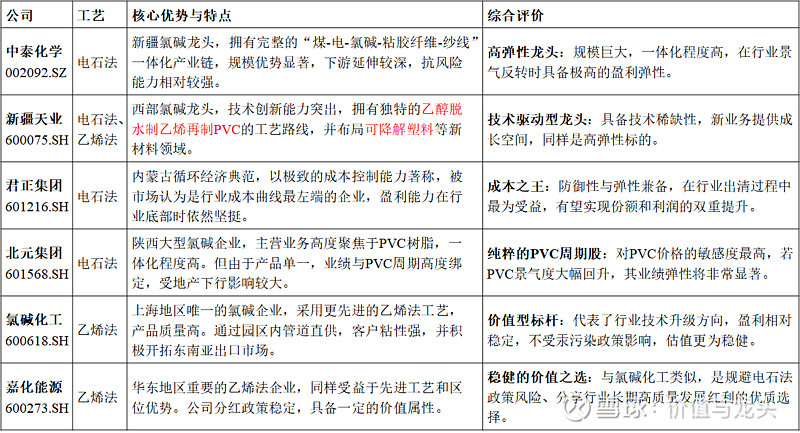 2)技术领先者:率先完成无汞化改造、采用先进节能技术、布局乙烯法等高端路线的公司(如新疆天业、氯碱化工)。