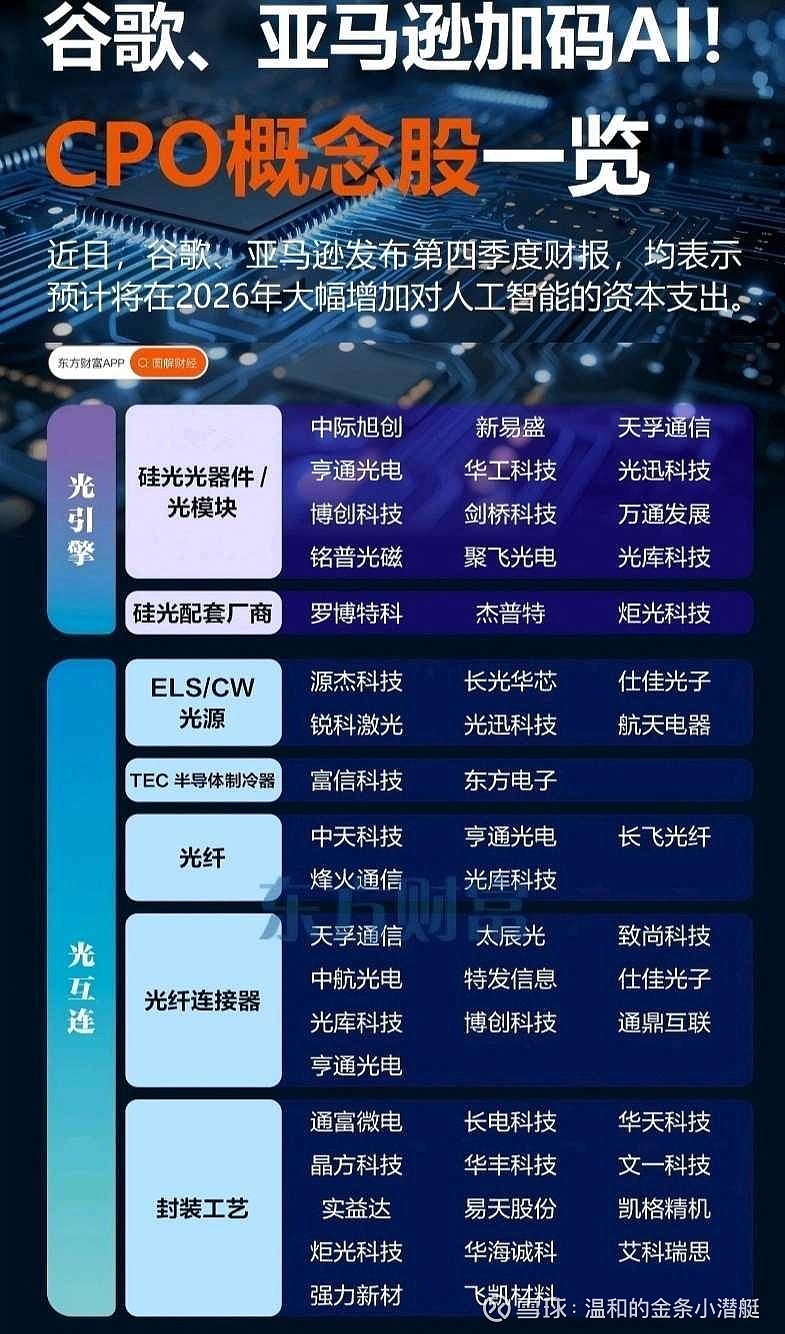 CPO保偏光纤/shuffle直接受益:光库开发高密度高保偏光纤阵列准直器、带隔离器保偏光纤阵列,适配800G/1.6T CPO,子公司加华微捷的FAU(光纤阵列单元)为CPO光引擎与外部光纤连接的核心接口,全球市占率约35%,是博通CPO方案独家中国供应商。