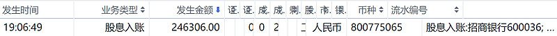 一年一度的招行分红又到帐了,打开帐户一看,分了24.6万,合一个月2万多,比我每月的养老金高不少呢,吃喝玩乐又有钱了。
