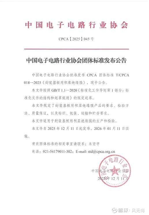 要出国内ABF制造标准給国内研发企业跟下游应用生产企业做参考了。国产ABF大规模应用給推广也即将来了