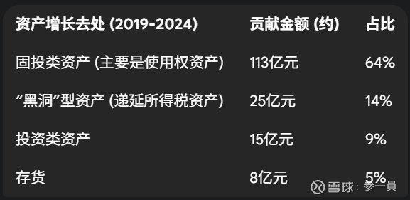 而这些新增资产的“去处”,同样未能有效地投入到核心生产活动中。资产增长的最大头(约64%)是与“租赁负债”相对应的非现金项目——使用权资产。在动用真金白银的投资中,最大的一笔新增“资产”(约14%),竟是记录其自身亏损的“递延所得税资产”。这清晰地表明,从股东那里融来的钱,有相当一部分最终被用来弥补了经营的窟窿,而非创造了新的价值。