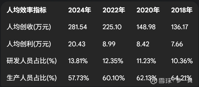 从人员结构的变化看,研发和技术人员占比持续提升,而生产人员占比则相应下降,这印证了公司正通过技术升级和效率优化来驱动成长的路径。
