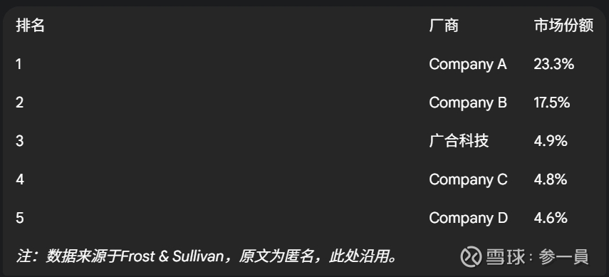 注:数据来源于Frost & Sullivan,原文为匿名,此处沿用。