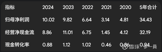 公司的经营活动展现了强大的、可持续的“造血”能力。在过去十年中,公司累计实现净利润57.89亿元,同期经营活动产生的现金流量净额高达50.39亿元,利润的现金转化率达到0.87。近五年来,这一比率更是提升至0.94。这充分说明,公司的账面利润并非“纸上富贵”,而是有实实在在的现金流入作为支撑,盈利质量非常高。