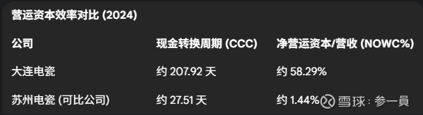这意味着公司大量的现金沉淀在了“客户的欠款”和“仓库里的货”上,无法自由支配。这种“重营运资本”的结构,直接导致了公司整体资产的运营效率偏低。一个关键指标是现金转换周期(CCC),它衡量企业从付出真金白银采购原材料,到最终收回销售现金所需要的时间。2024年,大连电瓷的现金转换周期长达约208天。